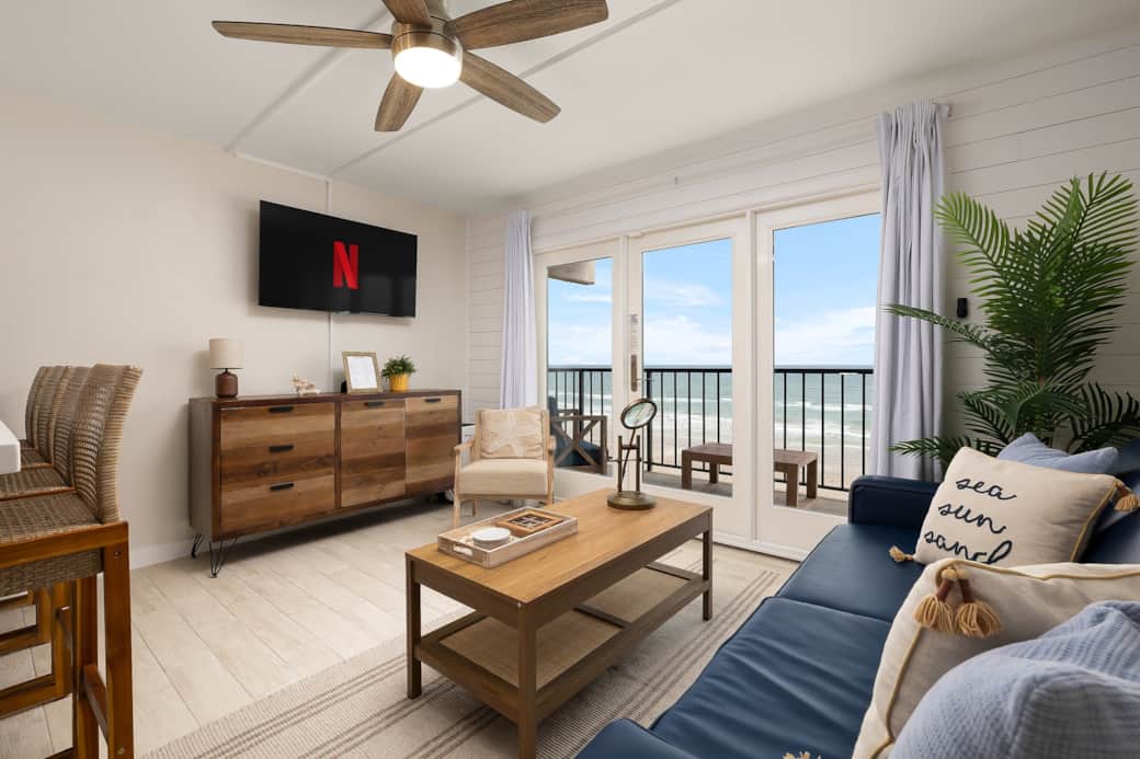This beachfront condo is a beautifully renovated 1-bed, 1-bath unit at the Florence Condominiums on South Padre Island, offering unobstructed ocean views, a pool and hot tub, and just a short walk to Wanna Wanna. Guests enjoy modern comforts like memory-foam beds, soft bedding, full beach gear (wagon, chairs, umbrella, cooler), keyless entry, lots of parking, Netflix, and essentials like towels and toiletries—all with no front-desk check-in hassle.